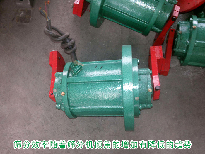 當(dāng)振動電機(jī)的工作轉(zhuǎn)速固定在500r/min時(shí),在相對增高線速度的錘頭撞擊下,使得破碎并使之均勻化,排料粒度相對小一些,較有利于下道篩分工序。篩分機(jī)在傾角較小的工況下,篩分效率都較高。但隨著篩機(jī)轉(zhuǎn)速的增高,傾角的增大,部分物料在篩機(jī)體內(nèi)開始做離心運(yùn)動,反而不利于篩分作業(yè),篩分效率迅速降低。